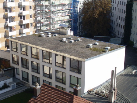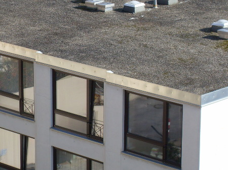 Wärmegedämtes Flachdach mit Blenden aus Aluminium