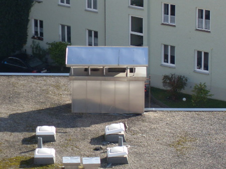Begrünte Tiefgarage ausgeführt mit Heißbitumen und Wurzelfester Dachbahn, für die Spenglerarbeiten wurde Aluminium verwendet.